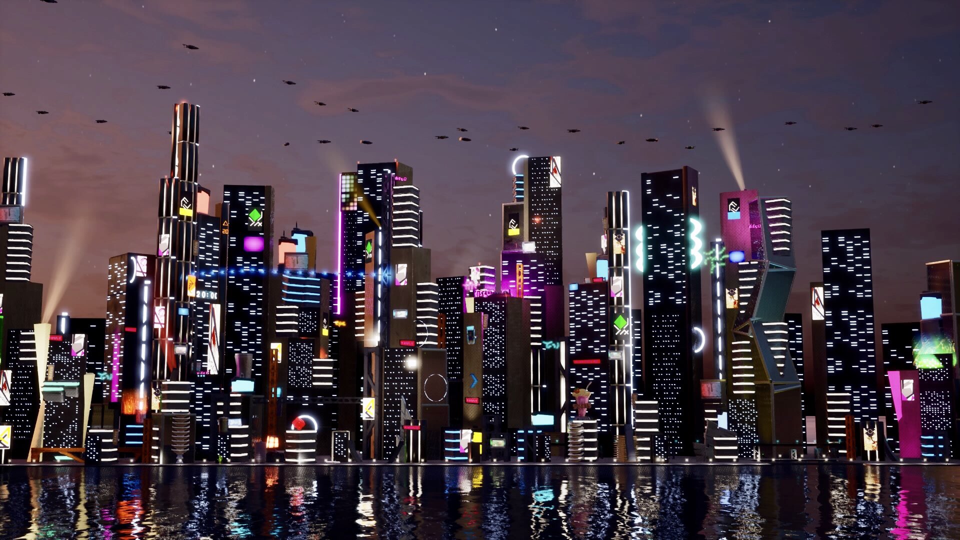 サイバーパンクな未来都市 8k画質の未来映像画像